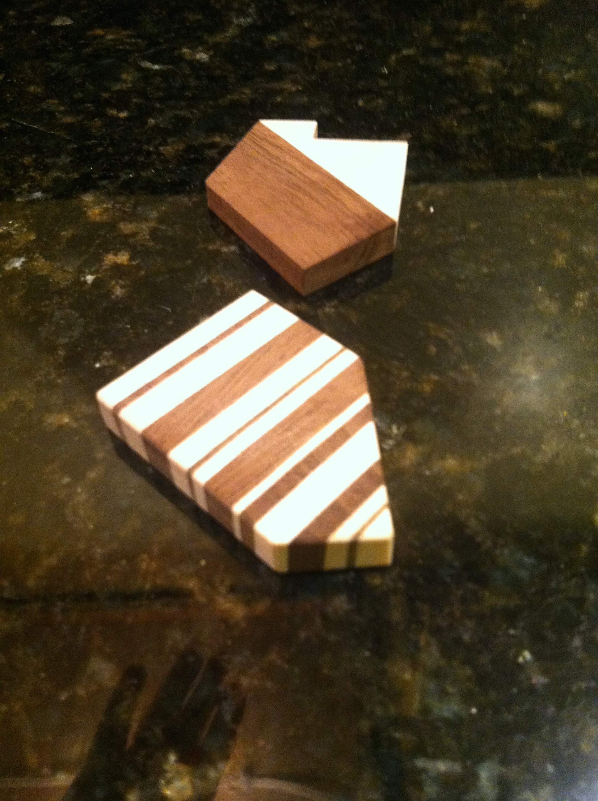 I’d been wanting to make some pendants that used bamboo and a very dark wood, and I came up with this design (the dark wood was teak reclaimed from an old outdoor chair I got for free on Craigslist):